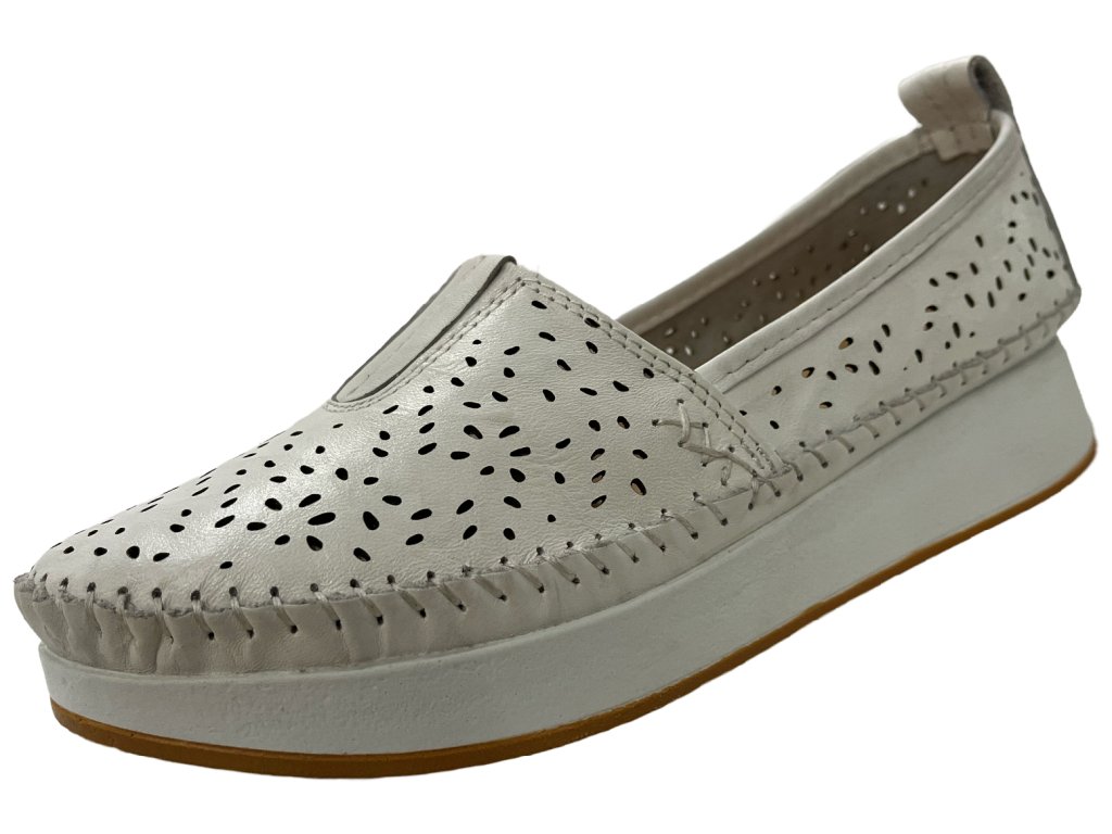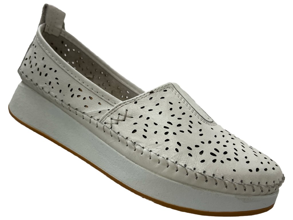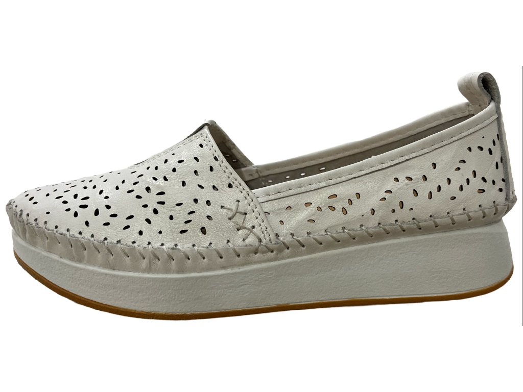 Dámske kožené poltopánky Klop bielej farby.